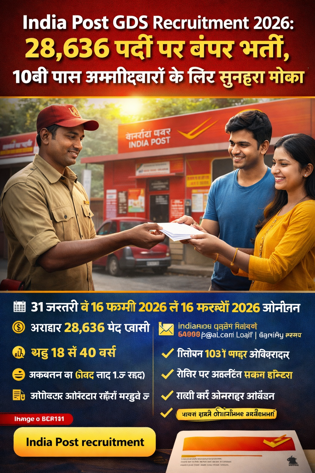 📮 इंडिया पोस्ट GDS भर्ती 2026 – 28,635 पदों पर आवेदन शुरू इंडिया पोस्ट (डाक विभाग), संचार मंत्रालय, भारत सरकार…