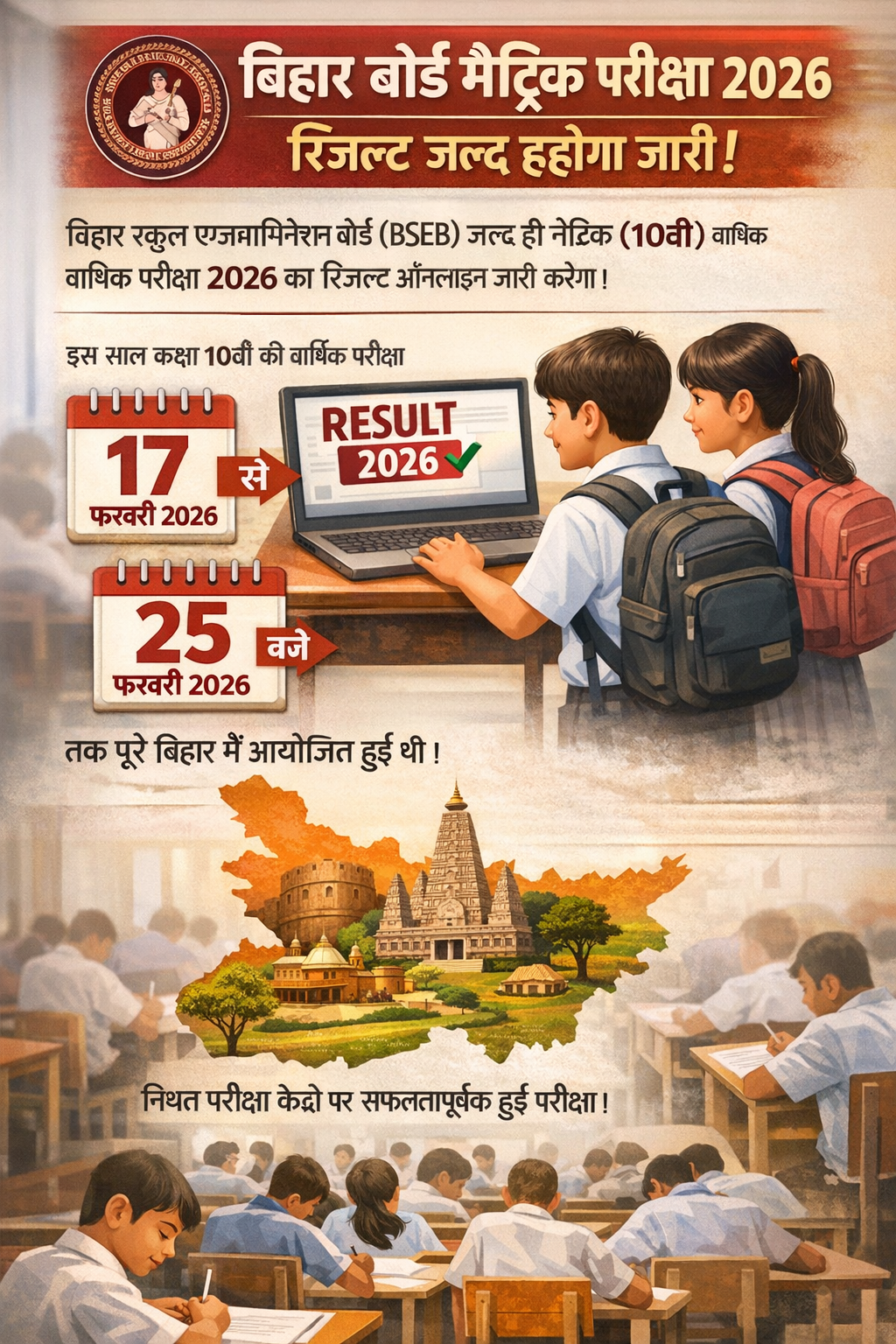 बिहार बोर्ड 10वीं रिजल्ट 2026 – पूरी जानकारी बिहार स्कूल एग्जामिनेशन बोर्ड (BSEB) जल्द ही मैट्रिक (10वीं) वार्षिक परीक्षा 2026…